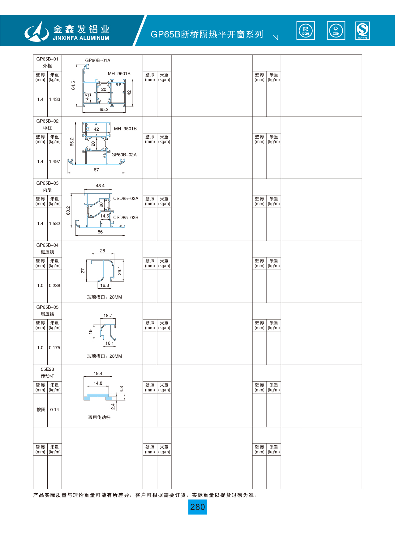 GP65B断桥隔热平开窗系列