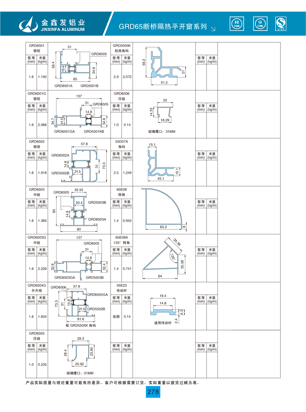 GP65B断桥隔热平开窗系列